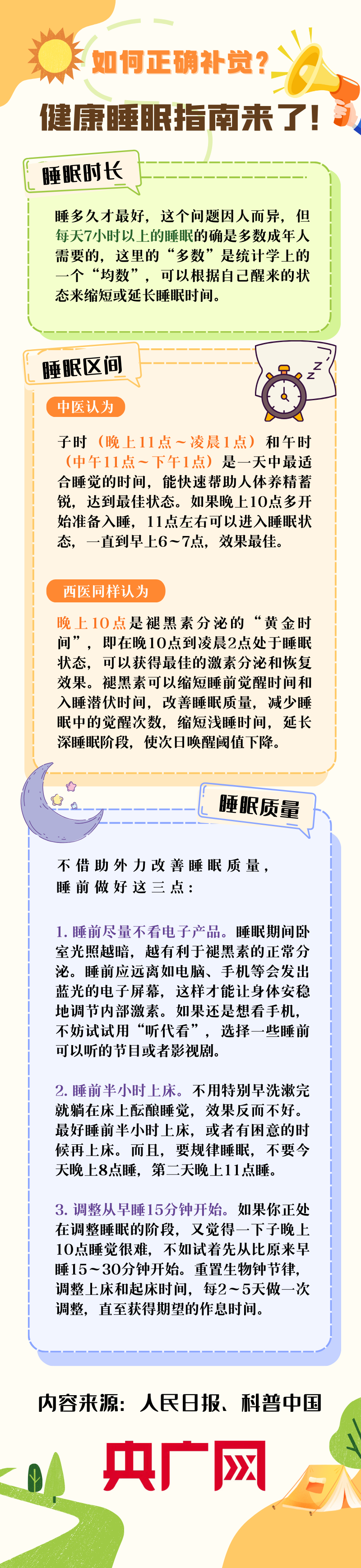 国庆期间,不少“宅家党”暂缓出游计划,决定居家补觉调养。如何正确补觉?这份健康睡眠指南助你身体高效充电!