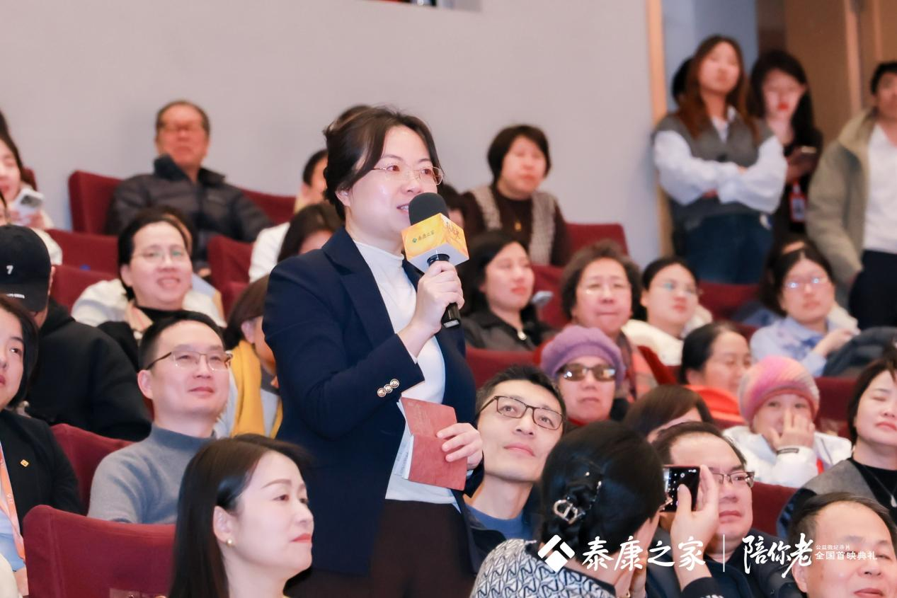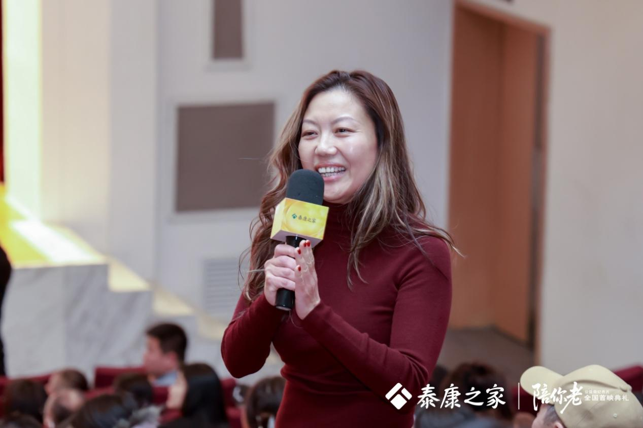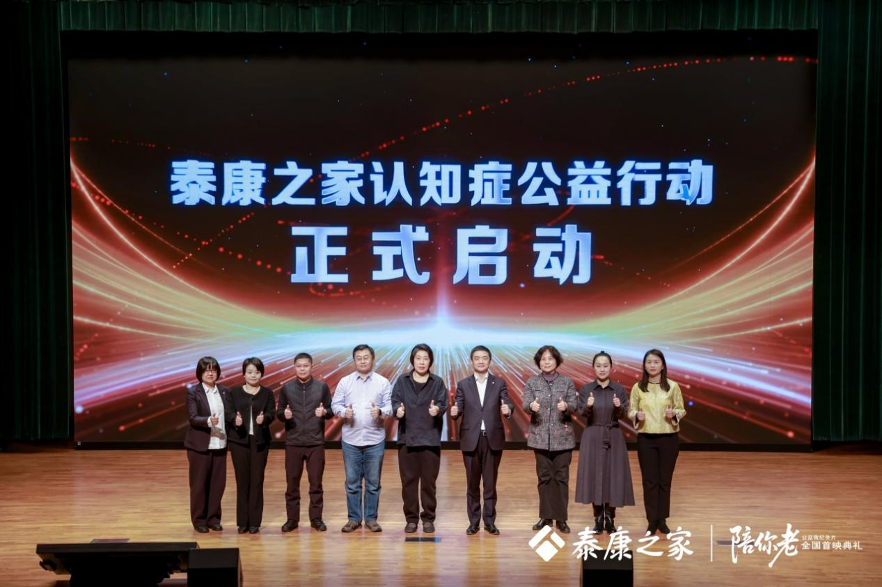 《陪你老》不是一部单纯的纪录片,它更像一面镜子,照见千万认知症家庭的困境,也是一次向全社会发出的关注认知症的倡议。首映会尾声,泰康保险集团管委会成员、泰康之家首席执行官邱建伟、泰康之家副总裁兼养老社区事业部总经理徐晓欢,以及导演任长箴和行业专家等上台,共同启动发布“泰康之家认知症公益行动”:未来三年,泰康之家将继续携手泰康溢彩公益基金会,充分发挥泰康之家在记忆照护领域的特色和优势,通过“认知学堂”“记忆早筛”“家庭赋能”三大行动,打造覆盖“早期筛查-家庭支持-专业干预-公众教育”的认知症长者社会支持网络,将影片承载的社会关怀从银幕照进现实,为认知症群体与家庭送上切实保障。