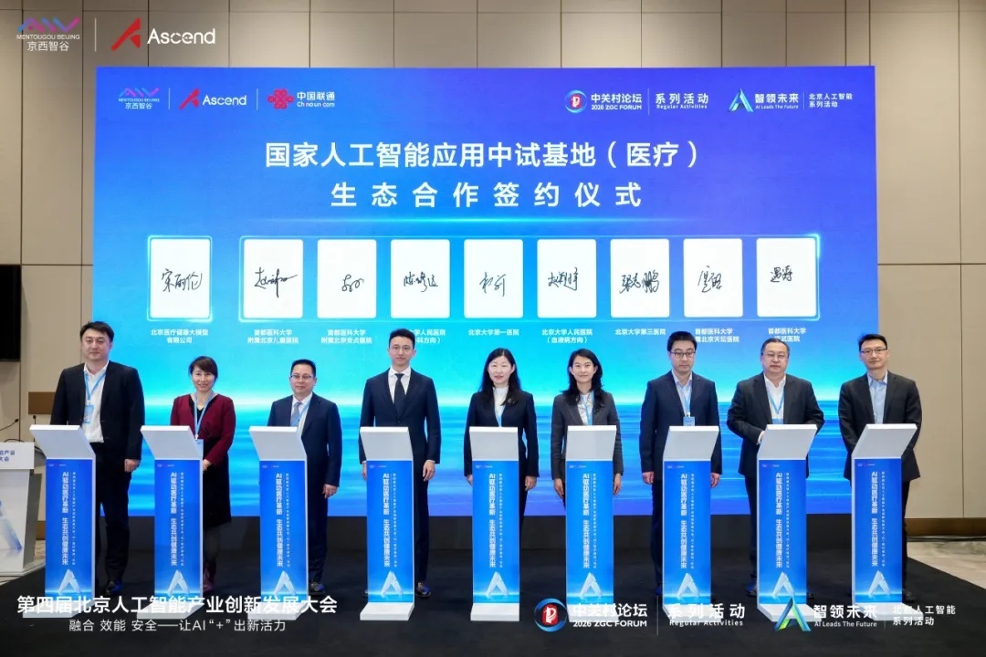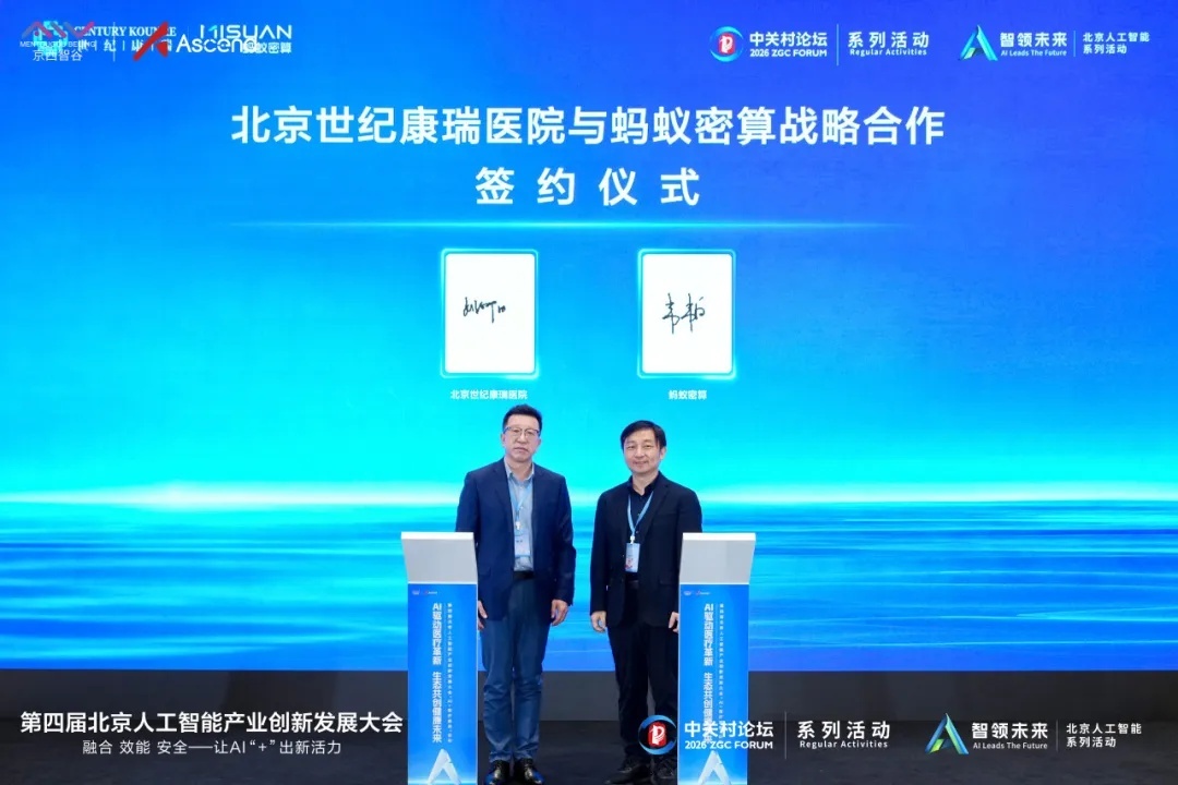 签约仪式搭建战略合作平台。北京大学第一医院等九家医院与北京医疗健康大模型有限公司签约成为国家人工智能应用中试基地生态合作伙伴;北京安贞医院与迈瑞集团、北京世纪康瑞医院与蚂蚁密算科技有限公司分别签订合作协议。