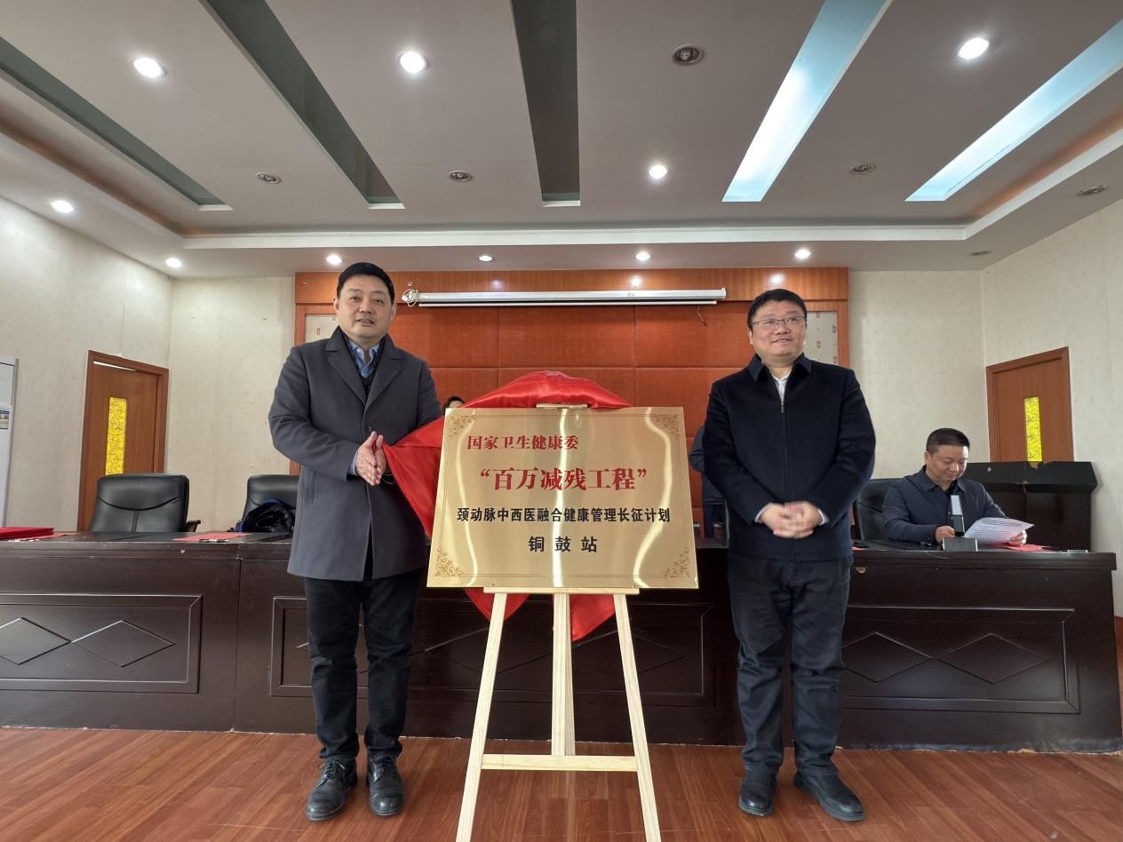 随后,揭牌环节依次举行:欧阳晨曦与谭光琅共同为“中国医学科学院阜外医院欧阳晨曦专家工作室”揭牌,欧阳晨曦与熊涛为“颈动脉中西医融合健康管理长征计划项目铜鼓站”揭牌。两块牌匾的落地,标志着铜鼓在引入优质医疗资源、提升基层心脑血管疾病防治能力上迈出了实质性步伐,也意味着革命老区群众将迎来“家门口看大专家”的健康新图景。